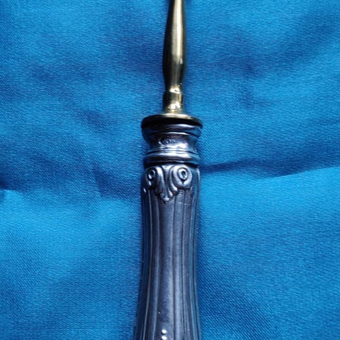 Kahvassa hopean leima 800, ja teräosa rst terästä. Pituus 16,5 cm.