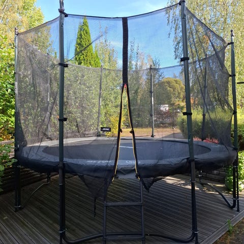 Myydään hyväkuntoinen ja hyvin pidetty Acon- trampoliini 4,6m turvaverkolla ulkokäyttöön. Pyöreä malli, jossa ympäröivä turvaverkko, sisältää myös tikkaat. Turvaverkko kiinnittyy pystytolppiin, jotka nousevat hyppymaton ulkopuolelle. Helppo koota. Talvisin trampoliini purettu varastoon.
