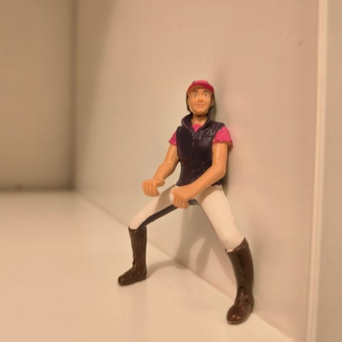 Schleic ratsastaja Ella. Käytönjälkiä näkyvissä.