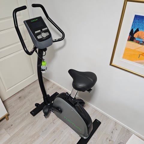 Kuntopyörä kotikäyttöön. Vastuksen säätöpyörä rungon etuosassa. Soveltuu sisätiloissa tehtävään kunto- ja peruskuntoharjoitteluun tai vaikka jalan kuntoutukseen leikkauksen jälkeen.