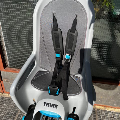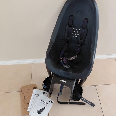 Polkupyörän runkoon kiinnitettävä lasten istuin. Istuimen saa helposti irti ja takaisin kiinni pyörään pika kiinnityksen ansiosta. Ostettu uutena, ohjeet avaimet kaikki tallella.