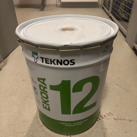 EKORA 12 on Joutsenmerkitty, erittäin hyvin kulutusta kestävä puolihimmeä vesiohenteinen akrylaattidispersiomaali. Se soveltuu niin sisäseinien kuin -kattojenkin maalaukseen kuivissa tiloissa. Maalia on helppo levittää ja se jättää tasaisen, kauniin puolihimmeän pinnan. Käyttökohteet: betoni-, rappaus-, tasoite-, tiili- sekä rakennuslevypinnat. Riittoisuus: ennen maalattu pinta 10 - 12 m²/l, tasoite ja puukuitulevy 7 - 10 m²/l, betoni- ja rappauspinta 4 - 7 m²/l. Kuivumisaika (+23 °C / 50 % RH): pölykuiva n. ½ h kuluttua, päällemaalattavissa 1 h kuluttua. Kuivuminen hidastuu viileässä ja/tai kosteassa. Väri maalarinvalkoinen T1724 ( T1327).