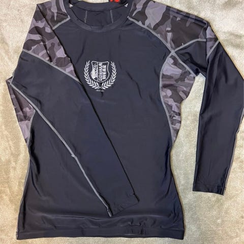 Gorilla Wear Cypress Rashguard kamppailulajien miesten paita koossa XXL. Lyhythihainen, vartalonmyötäinen rashguard-mallinen paita, päävärinä musta ja harmaat camo-yksityiskohdat olkapäissä ja selässä. Joustava, tekninen materiaali, joka sopii kamppailulajeihin ja muuhun urheiluun. Painettu rintalogo ja selkälogo. Soveltuu käytettäväksi esimerkiksi lukkopainissa, brasilialaisessa jujutsussa ja muissa kamppailulajeissa alus- tai treenipaitana.