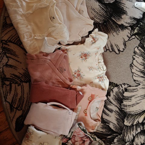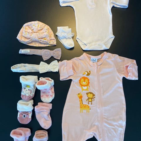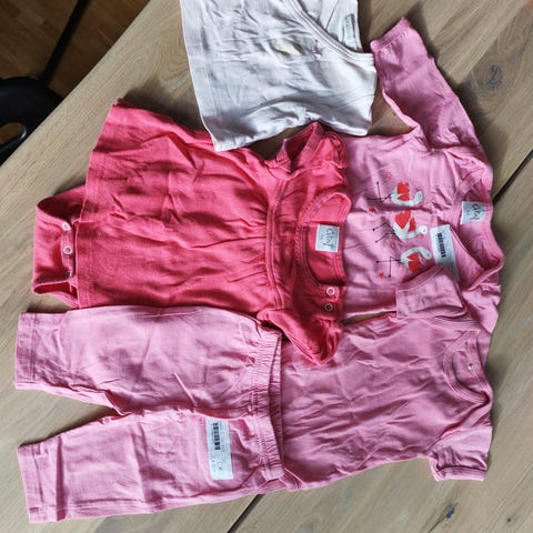 Myydään settinä tyttövauvan vaatteita. Suurin osa ostettu meille uutena, pari näistä ovat ostettu käytettynä. Kaikissa kokomerkintä 56. Siisti käytetty kunto, en huomannut tahroja.