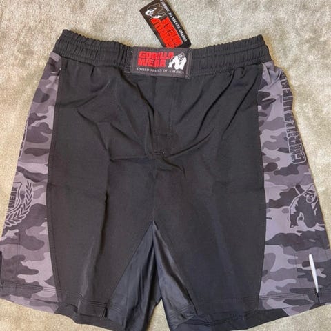 Gorilla Wear kamppailulajishortsit miehille, koko L. Väri musta, sivuissa harmaa camo-kuvio. Joustava vyötärö, jossa kiristysnaru ja tarrakiinnitys. Malli on suunniteltu erityisesti kamppailulajeihin ja muuhun harjoitteluun, tarjoten liikkumisvapautta ja kestävyyttä. Materiaali on kevyt ja nopeasti kuivuva tekokuitu. Sopii esimerkiksi nyrkkeilyyn, vapaaotteluun ja muihin kamppailulajeihin.