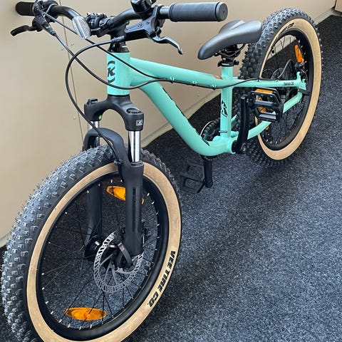 Oranssi 20-tuumainen Stevens Beat SL pyörä. Kevyt ajaa, käsijarrut edessä ja takana. Kierrevaihtaja takavaihteille.