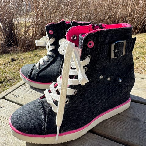 Uudenveroiset kengät nuorelle neidille, valmistajan kokomerkintä 33, mutta on malliltaan pieni, joten ehkä paremminkin koko 32. Saa tulla sovittamaan