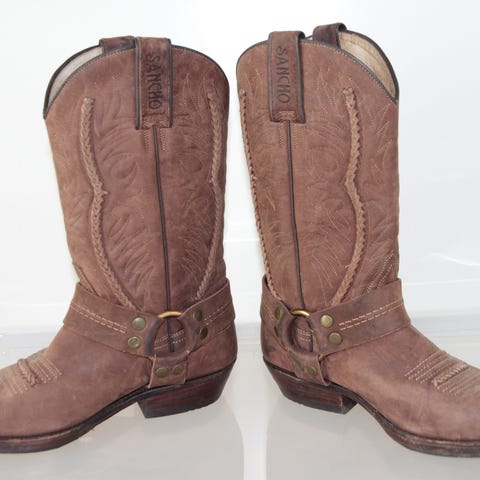 Upeat nahkaiset Cobra biker saappaat. En löydä koko lappua, mutta 39 jalkaan liian pienet, joten sanoisin että ovat 38. Kulumaa löytyy, perus ilme siisti.