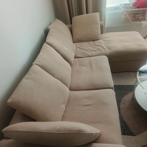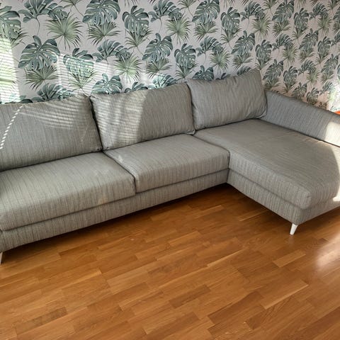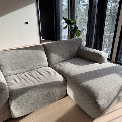 Belluksen laadukas divaanisohva, mitat 240cm pituus ja divaaniosan leveys noin 147cm sekä keinuva, pyörivä nojatuoli tukeva ja hyvä istua. Salama vääristää, ei ole kulunut kangas. Voi ostaa myös erikseen jos ei tarvitse molempia.