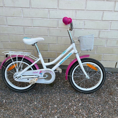 Madison Helmi lastenpyörä 16" renkailla. Rengaskoko on 16" (47-305). Pyörässä on lokasuojat, heijastimet ja tavallinen jalkapoljinjarru. Soveltuu lapselle, jolle 16 tuuman pyöräkoko on sopiva.