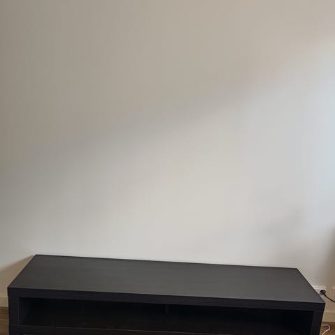 Tarpeettomana Ikean musta Tv—taso, joka toimii hyvin myös sivu-,kukka- tai sohvapöytänä.