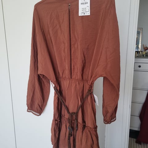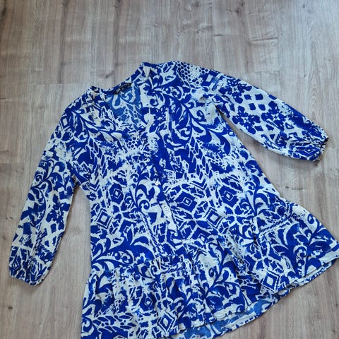 Zara kesämekko naisille, koko M. Pitkä, olkaimellinen malli, jossa syvä V-pääntie edessä. Materiaalina viskoosi. Mekossa on kirjava kuosi vaaleanpunaisen ja vihreän sävyissä. Selässä joustava smokkirypytys ja helmassa leveä frillakerros. Sopii käytettäväksi kesämektona arkeen ja vapaa-aikaan.