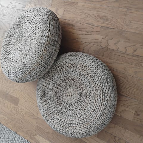Hyväkuntoinen puutarhasetti. Ollut kuivissa olosuhteissa lasitetulla parvekkeella. Reunatuelliset istuinosat x2, koot 62 cm istuinosan leveys, ulkomitat 86x80, 2x ilman reunaa olevat istuinosat 62 cm leveitä. Lasilevyllinen pöytä korkeus 35 cm, halkaisijaltaan 62x62 cm. Tyynyt kuuluvat settiin.