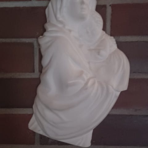 Materiaali jonkinlaista keramiikkaa tai kipsiä. Ontto ja melko kevyt.