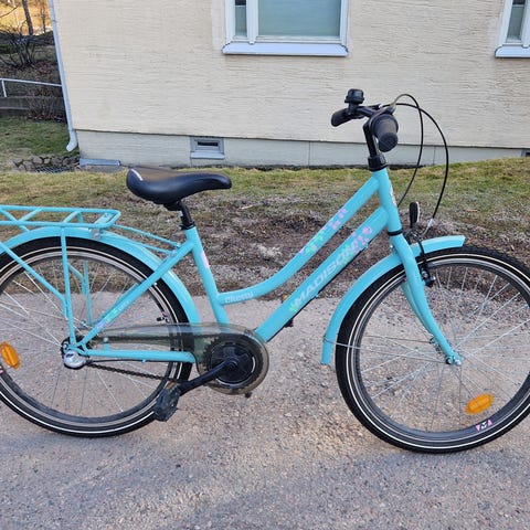 Pyörä on käytetty ja tämänhetkinen kunto näkyy kuvissa. Esim. Ohjaustangossa ja korissa ruostetta, joka ei kuitenkaan vaikuta ajoon.