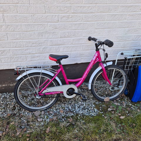 Lapselle pieneksi jäänyt polkupyörä. Käytänjälkiä on, mutta täysin toimiva. Viime vuonna hommattu kori eteen, kuuluu mukaan.