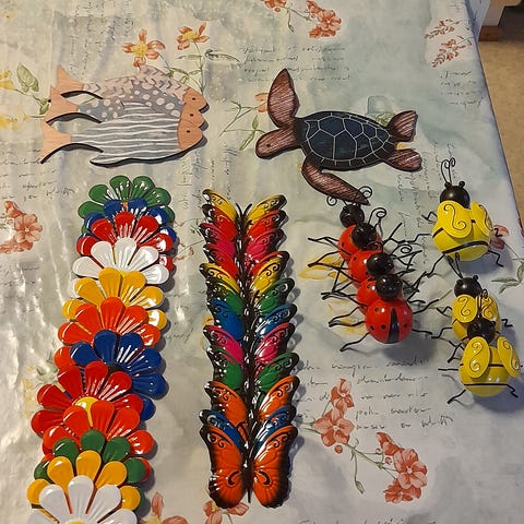 Kolme puista ukko patsasta. Ollut minulla pihalla pihakoristeina talven yli. Alkuperämaa saksa.