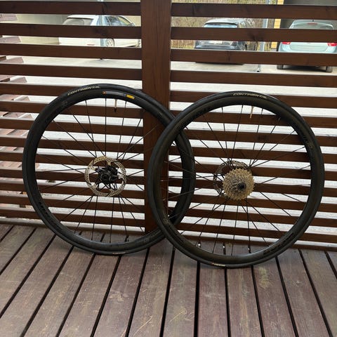 Tästä hyvät upgrade-vanteet vannejarrulliseen maantiepyörään. Ei mitään kiinakamaa vaan made in France. Eikä tarvitse ajaa sormen paksuisilla nakeilla jos ei välttis halua.