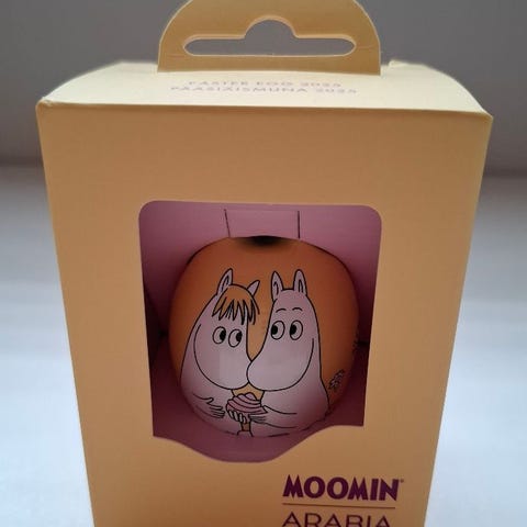 Kokoelma pääsiäisaiheisia muumituotteita: kaksi tarjotinta (20x27cm), kaksi metallimunaa (10x15cm) ja kaksi paketillista servettejä (33x33cm). Kaikki ovat käyttämättömiä ja aivan uudenveroisessa kunnossa. Tuotteiden kuvitus perustuu Tove Janssonin 1940-luvulla tekemiin maalauksiiin. Myyn vain kaikki yhdessä ja voin lähettää Postin M-pakettina (10,90 euroa). Maksu ensisijaisesti MobilePaylla. En käytä ToriDiiliä.