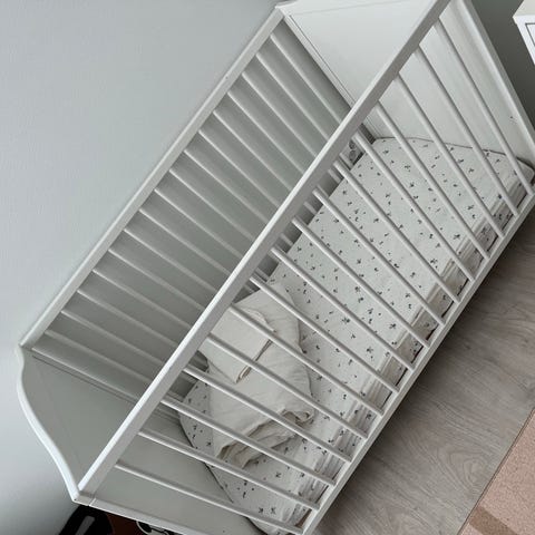 IKEA pinnasänky, väri valkoinen. Materiaalina puu, pohjana sälepohja. Pohjan saa nostettua pykälän ylöspäin. Pinnoissa tahraa ja pieniä sormenjälkiä, kulmissa kulumaa. Pitkillä reunoilla muovinen suojus pureskelijoiden varalta. Vain nouto, en pura osiksi mutta ostaja voi saapua ruuvimeisselin kanssa :)