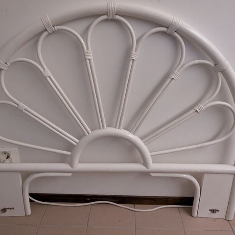 Myydään kaunis ajaton valkoinen rottinkinen sängynpääty.