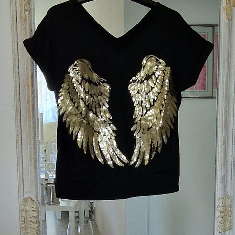 Edessä kivillä kuva ja takana enkelin siivet. Ehjä,siisti käytetty kunto.