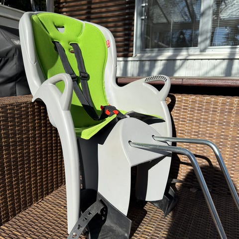 Hamax turvaistuin joka kiinnitetään pyörän runkoon. Kunto hyvä ja toimiva.