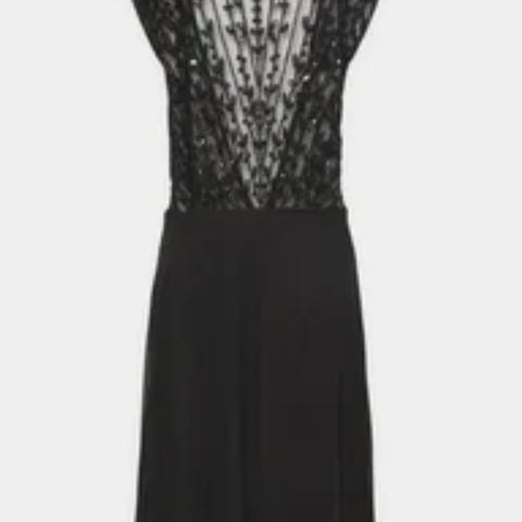 Shein halterneck paljettimekko, koko XS (EU 34). Mekko on musta ja kauttaaltaan vihreän sävyisin paljetein koristeltu. Mallissa on syvä V-pääntie, niskan taakse solmittavat nauhat ja avoin selkä. Helma on lyhyt ja koostuu useista kerroksellisista röyheläosista. Kuntien uuden veroinen.