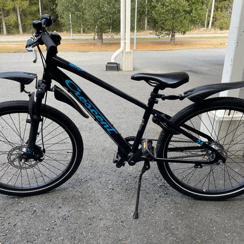 Jousitus ja levyjarrut edessä. Lisäksi takalokasuoja laitettu lisänä. Pyörässä jalustin. Käytön jälkiä toki on, mutta pyörä on hyvässä kunnossa. Etu-ja takarenkaissa lisättynä muutama pinnaheijastin.