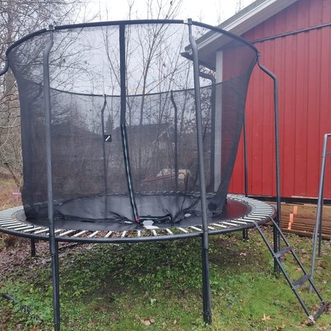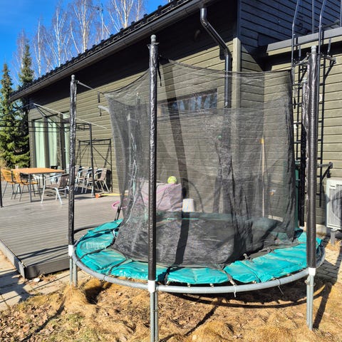 Myydään useamman vuoden vanha trampoliini. Trampoliini hyvässä kunnossa ja suojaverkot ehjät, ainoastaan turvaverkon ylätangot hajalla, mutta ajavat edelleen asiansa ja turvaverkko tästä huolimatta napakka, niin ylhäältä kuin alhaaltakin.