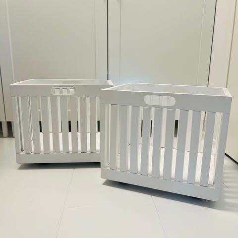 Muumi puinem säilytyslaatikko, valkoinen runko ja musta kansi. Mitat näkyvät kuvissa. Kansiosa toimii myös tasopintana esimerkiksi istuimena tai laskutasona kevyelle käytölle.