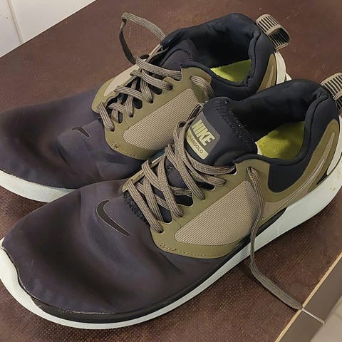 Nike juoksukengät, koko 44. Väriltään mustat, valkoisella pohjalla. Nauhakiinnitys ja joustava, kuvioitu ulkopohja, joka tarjoaa pitoa erilaisilla alustoilla. Päällinen on hengittävää tekstiilimateriaalia, jossa synteettisiä vahvikkeita. Sopivat juoksuun ja muuhun liikuntaan sekä arkikäyttöön.