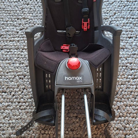 Hamax Siesta lasten polkupyörän istuin 22 kg. Tarkoitettu polkupyörän runkoon kiinnitettäväksi. Istuimessa on harmaa-musta muovirunko, pehmustettu istuinosa sekä säädettävät jalkatuet ja jalkahihnat. Turvavaljaat ovat monipistevaljaat, joissa on solki lapsen kiinnittämistä varten. Sopii enintään noin 22 kg painavalle lapselle, valmistajan ohjeiden mukaan. Istuimessa on selkänoja, sivutuet ja takana heijastin näkyvyyden parantamiseksi. Kiinnitystanko ja kiinnitysmekanismi sisältyvät kuvan mukaisesti. Kiinnitysosa on lukittava ja siihen on 2 avainta. Istuma-asentoa saa säädettyä hieman takakenoon.