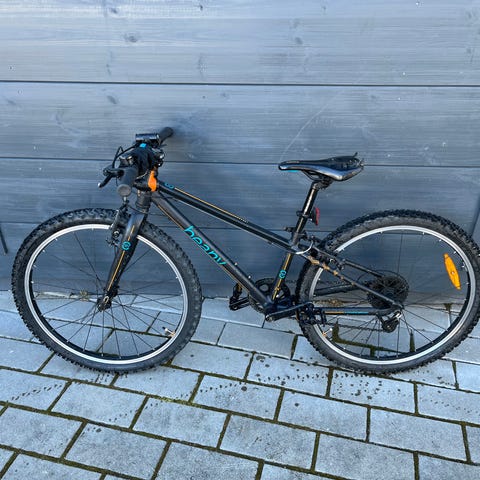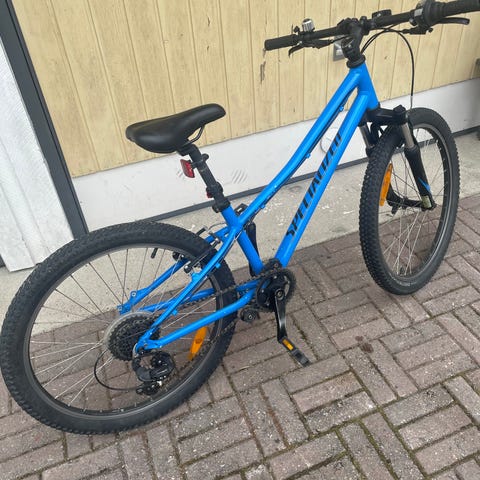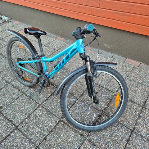 Xtreme lasten polkupyörä 24" renkailla. Polkupyörässä on oranssi runko ja mustat yksityiskohdat. Pyörässä on etujousitushaarukka, käsijarrut ja vaihdepyöräilyyn sopiva ohjaustanko. Satula on säädettävä ja pyörässä on lokasuojat ainakin etupyörässä.