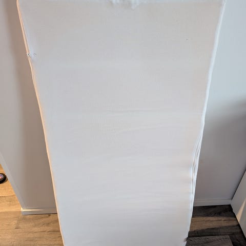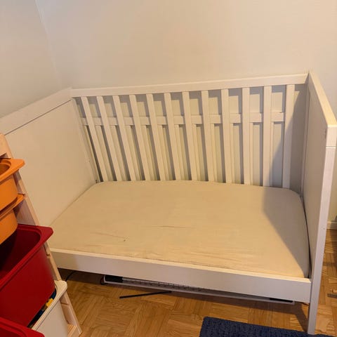 120 x 60 x 8 cm. Yhdellä lapsella ollut käytössä, siisti. Päällinen juuri pesty. Kissatalous.