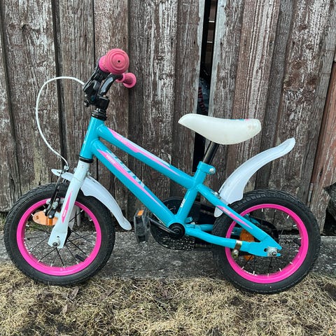 White Rapid Light lastenpyörä 12". Pyörässä on sininen runko vihreillä yksityiskohdilla, 12 tuuman renkaat ja lokasuojat. Ketjusuoja peittää eturattaan ja ketjun. Etupyörässä on käsijarru. Satula ja ohjaustanko ovat säädettävissä lapsen pituuden mukaan. Soveltuu pienille lapsille ensimmäiseksi polkupyöräksi 12" kokoluokassa.
