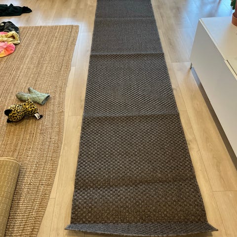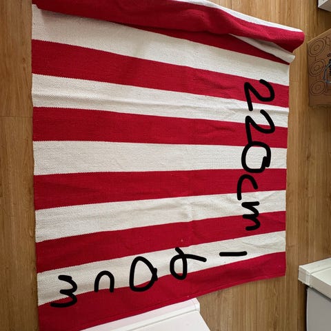 IKEA matto punainen kuviollinen. Pitkänmallinen käytävämatto, jossa monivärinen, perinteinen koristekuviointi ja punainen pohjaväri. Sopii käytettäväksi esimerkiksi käytävässä, eteisessä tai muussa kapeassa tilassa. Materiaalista ja tarkasta koosta ei ole lisätietoa.