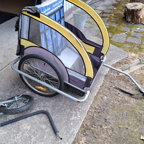 Lasten polkupyörän peräkärry kaksipaikkainen keltainen. Varattu
