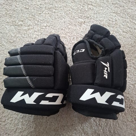 CCM jääkiekkohanskat junioripelaajalle. Koko 23 cm / noin 110 cm pituinen pelaaja. Väri musta, valkoiset CCM-logot. Hanskoissa pehmustetut selkä- ja rystysosat sekä ranteen tuki. Soveltuvat jääkiekkoon ja muuhun kaukalopelaamiseen juniori-ikäisille.
