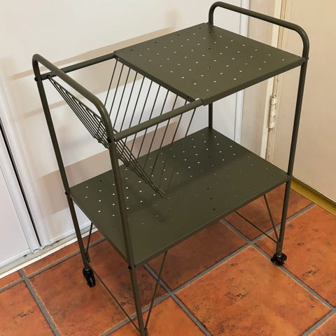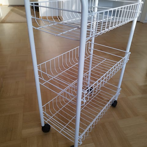Myydään vanhan roosan/pink nude värinen metallinen kärry. Renkaat alla.
