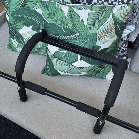 Leuanvetotanko oviaukkoon. Väri musta. Tanko asetetaan ovenkarmeihin ilman kiinteää asennusta. Sopii ylävartalon lihaskuntoharjoitteluun, kuten leuanvetoihin ja roikuntaan kotikäytössä.