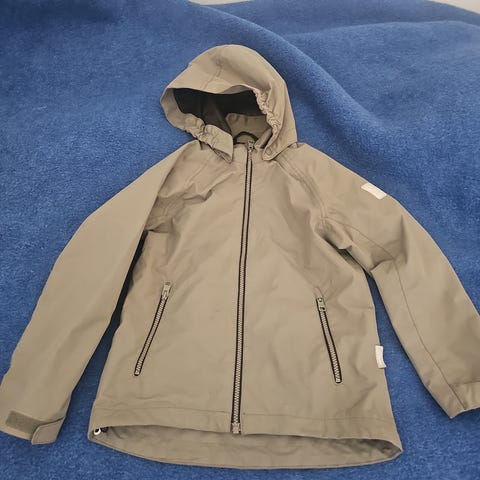 Takki on hyvässä kunnossa, siisti ja ehjä. Ei reikiä tai tahroja, vetoketju toimii hyvin.