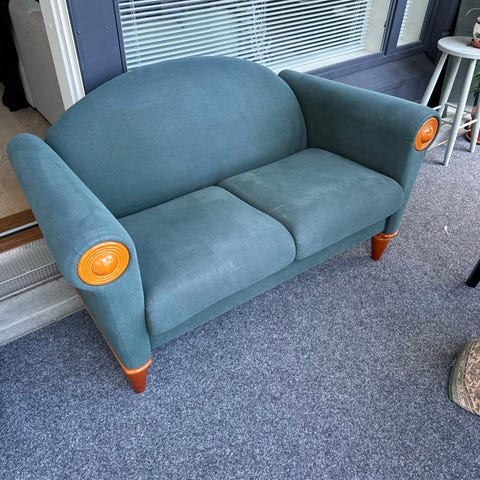 Mintun vihreä vuodesohva koiratalosta. Hyvässä kunnossa, puuttuu yksi nappi ja pieni tahra sohva taitoksessa. Tykätään tosi paljon mut ei ole vaan tilaa enää. Haku Herttoniemestä.