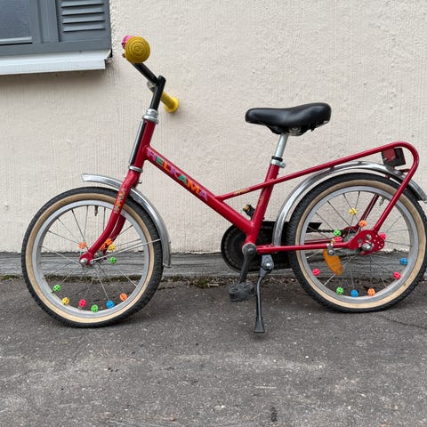 Sopii potkupyörästä polkimiin siirtyvälle sekä ensipyöräksi apupyörien kanssa. N. 90-110cm pituiselle lapselle. Mukaan satulan alle kiinnitettävä työntöaisa ja apupyörät.