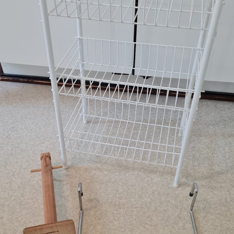 Askon hyllystö, 4 hyllyllä, hyväkuntoinen myydään valmiiksi kasattuna. Kehikko mustaksi maalattua terästä ja hyllyt tammilaminaattia. Nouto Espoosta tai voin toimittaa pääkaupunkialueella lisäkorvausta 5-10€ vastaan.