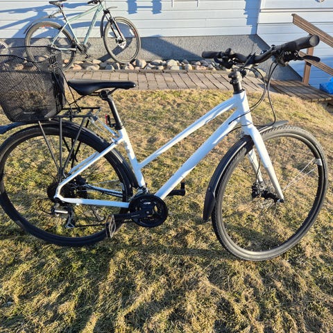 Hyväkuntoinen naistenmallinen hybridipyörä. Laadukkaat komponentit eli rullaa ja toimii hyvin. Säädettävä ohjaustanko. Tarjoa jos hinta ei miellytä.