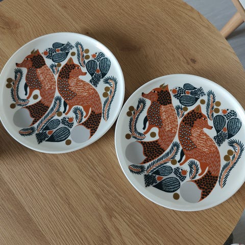 Marimekko Ketunmarja patalappu ja patakinnas sekä 2kpl keittiöpyyhkeitä. Patalappu ja patakinnas hyvässä kunnossa, vähän käytetty ja kertaalleen pesty. Keittiöpyyhkeissä käytön tuomaa kulumaa ja värjäymiä mitkä ei konepesussa ole lähtenyt. Ensisijaisesti pakettina.