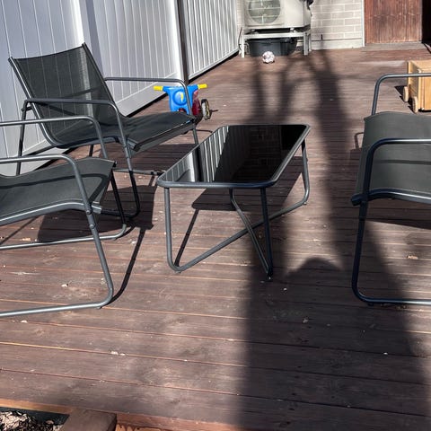 Puutarhaan, terassille tms. Käyttöön hyväkuntoinen pöytä ja kaksi tuolia. Pöydän halkaisija 60 cm.