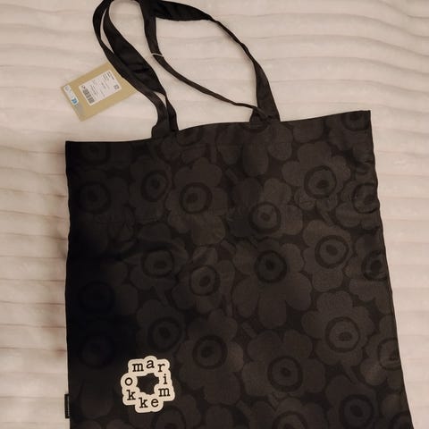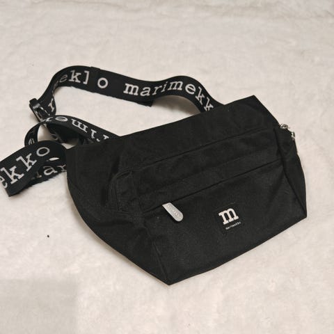 Marimekko kangaslaukku unisex. Laukku on valmistettu kankaasta ja siinä on olkahihna, jossa Marimekko-logo. Mukana erillinen valkoinen kangaspussi, jossa on Marimekko-teksti. Sopii arjen käyttöön esimerkiksi pienenä olkalaukkuna tai tavaroiden kuljettamiseen.