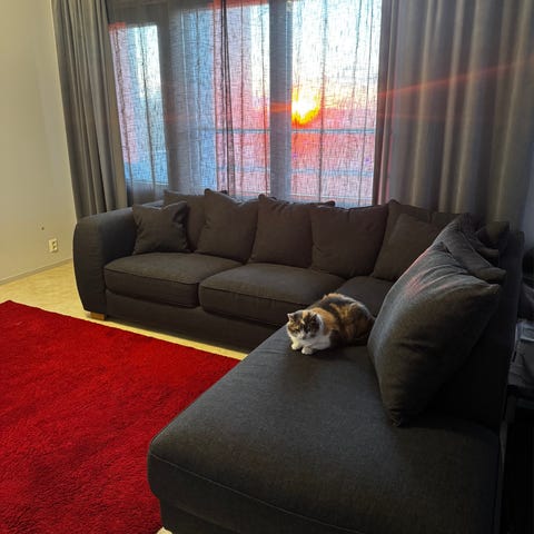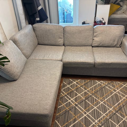 Kankaissa jossain kohdissa likaa, kankaat voi pestä, linkissä lisää tietoa., aikoinaan Sotkasta ostettu. Hyvä löhösohva, mihin mahtuu koko perhe.
